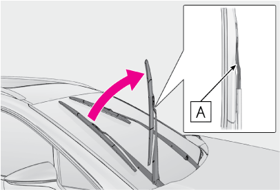 AUTOモード選択中にシフトポジションがPの状態でワイパーが作動しているときにフロントドアを開けると、ワイパーの水しぶきが車両の近くにいる人にかかるのを防ぐためにワイパーの作動が停止します。フロントドアを閉めると作動を再開します。