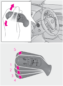 レバーを操作すると、ワイパーまたはウォッシャーが作動します。