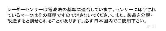 お守りいただかないと、レーダーが正常に作動せず、思わぬ事故につながり、重大な傷害におよぶか、最悪の場合死亡につながるおそれがあります。