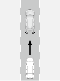 後方車両への接近警報は、同じ車線を走行する後方車両が追突の可能性が高い状況のとき、検知範囲に入った車両を検知します。