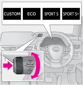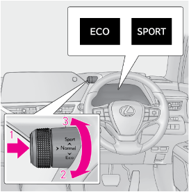 - ノーマルモード燃費性能、静粛性、運動性能のバランスがよく、市街地を走行する場合に適しています。ノーマルモード以外のときにスイッチを押すと、ノーマルモードにもどります。