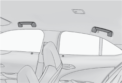 天井に取り付けられているアシストグリップは、走行中にシートに座っている状態で体を支えるときにお使いください。