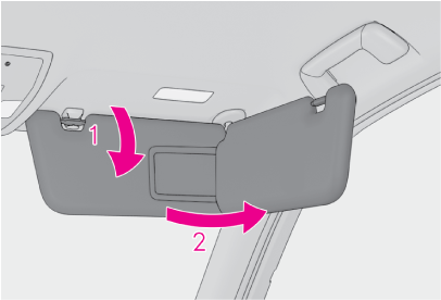 - 側方をさえぎるには、バイザーを下ろした状態でフックからはずし、横へまわす