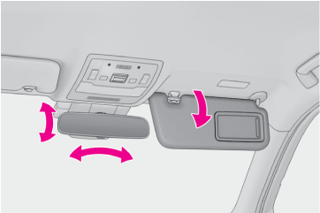 サンバイザー使用時に干渉しない範囲で、後方を十分に確認できるように調整してください。