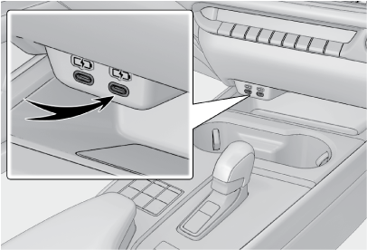 コンソール後方:充電用USB Type-C 端子を使わないときはフタを必ず閉じてください。端子部に異物や液体が入ると故障やショートの原因になります。