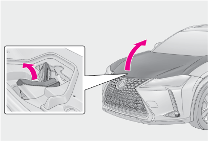 ステーを正しくもどさない状態でボンネットを閉めると、ボンネットやステーが損傷するおそれがあります。
