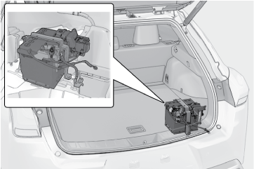 この車両の補機バッテリーは、ラゲージルーム(運転席側)のカバー内にあり、エンジンルームには搭載されていません。