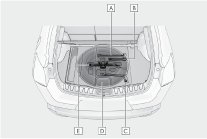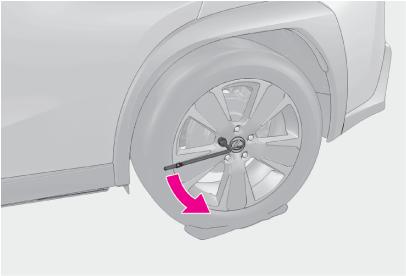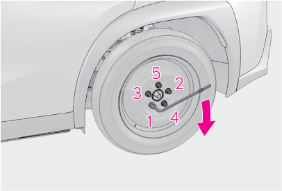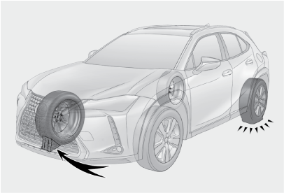 パンクしたタイヤを、備え付けの応急用タイヤと交換してください。