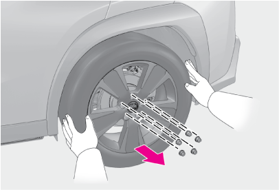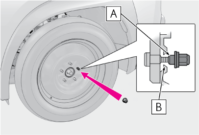 タイヤ交換などをする際は、パワーバックドアの作動(→パワーバックドアの設定を変更するには(パワーバックドア装着車))を停止してください。停止しないと、誤ってパワーバックドアを作動させたときにバックドアが動き、指や手を挟んでけがをするおそれがあります。