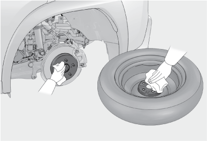 走行直後のディスクホイールやブレーキまわりは高温になっているため、タイヤ交換などで手や足などがふれると、やけどをするおそれがあります。
