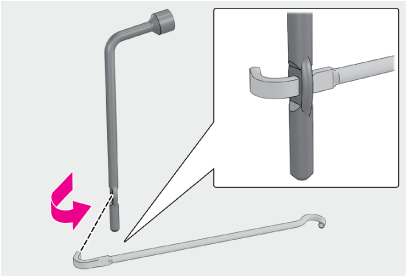 部を手でまわして、ジャッキの溝をジャッキセット位置にしっかりかける